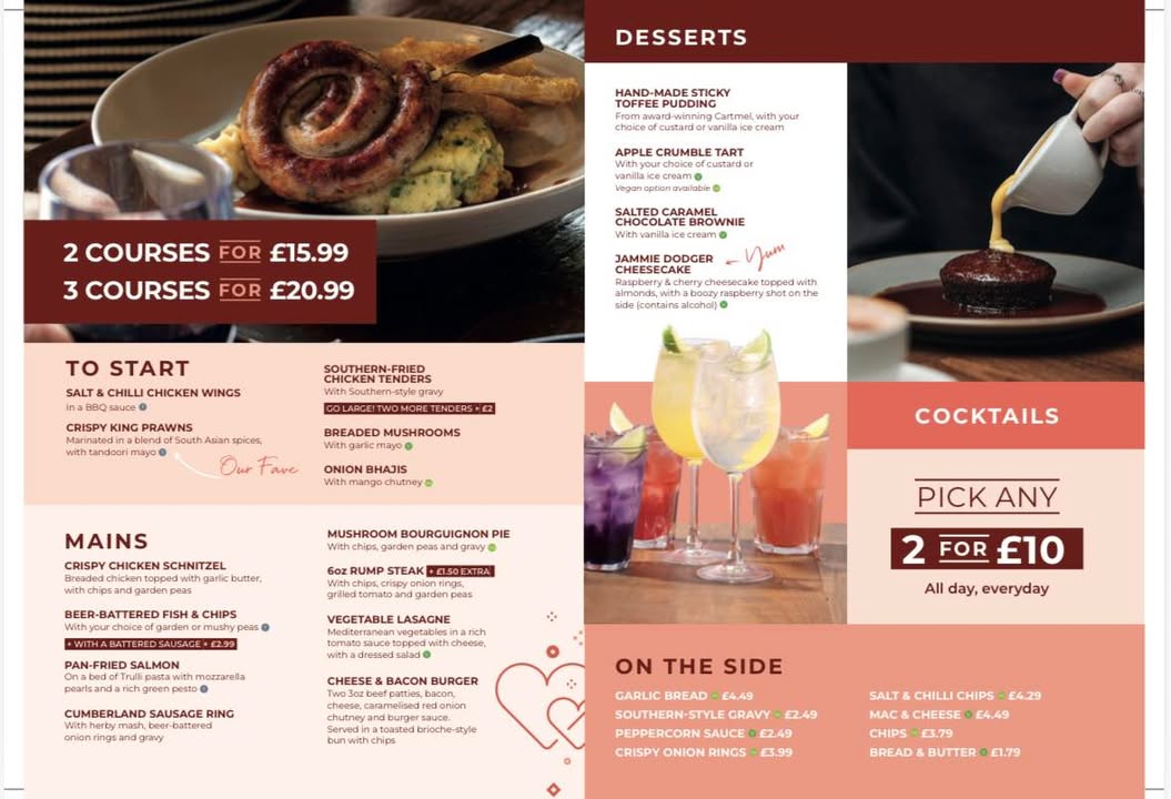We’re proud to offer a menu packed with the most appetising dishes. Our passion for taking traditional pub classics and making them the best around by using the most decadent of ingredients, makes every meal served have you coming back time and time again!