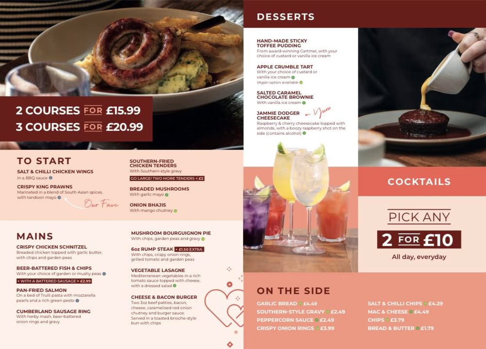 We’re proud to offer a menu packed with the most appetising dishes. Our passion for taking traditional pub classics and making them the best around by using the most decadent of ingredients, makes every meal served have you coming back time and time again!